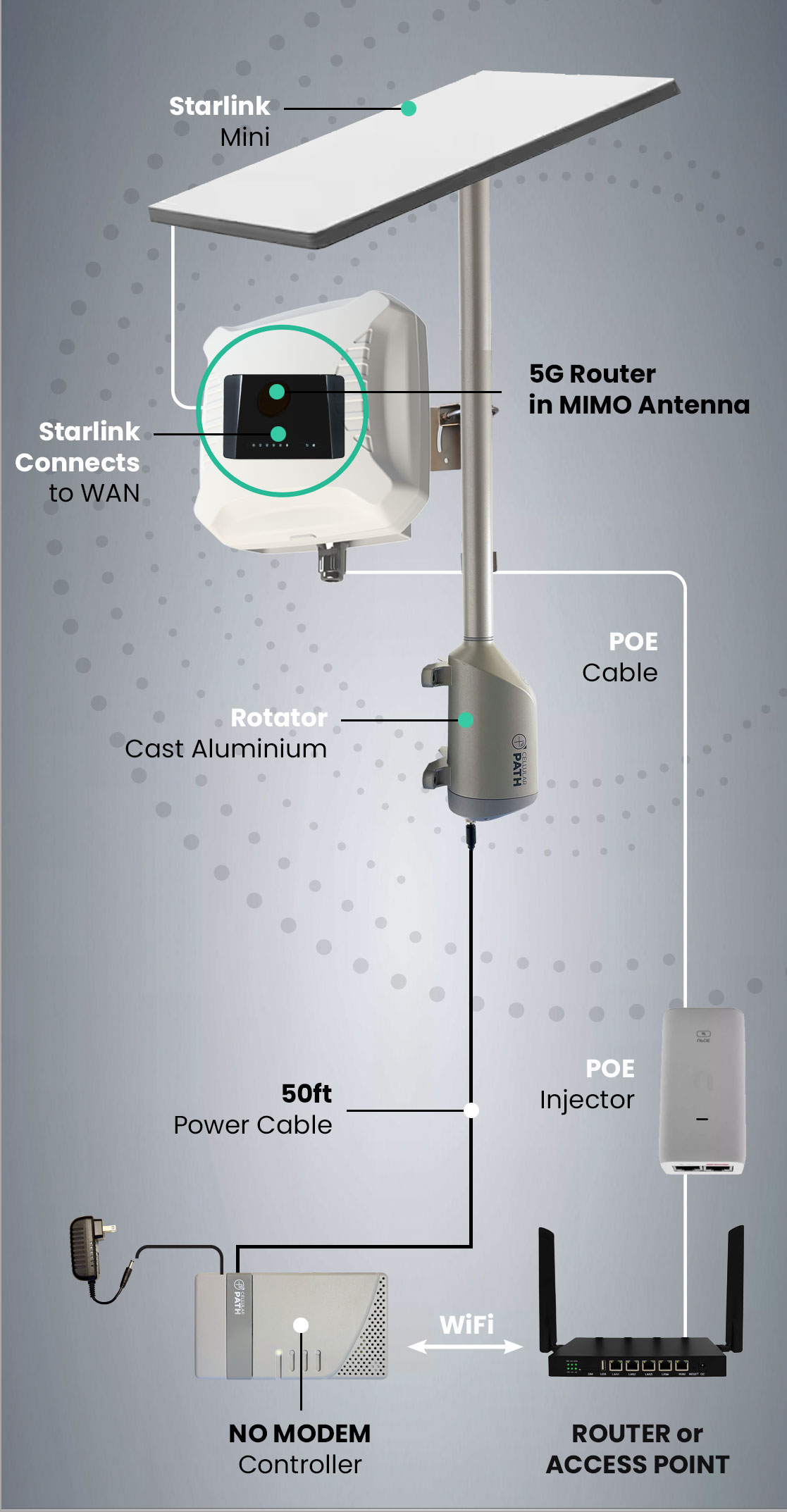 The Cellular Path Antenna seeks out the optimal cellular signal for your chosen carrier. In instances of zero cellular signal, further investigation to determine the proximity of the nearest cell tower is necessary. We can suggest antennas capable of reaching cell towers located up to 30 miles away.